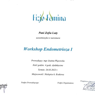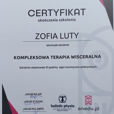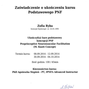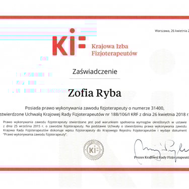 Jestem fizjoterapeutką. W swojej pracy bliskie jest mi podejście, że ciało funkcjonuje jako całość, a nie dany jego obszar czy tylko układ ruchu. Uważam, że jedynie takie podejście do diagnostyki i terapii daje długofalowe efekty. Studiowałam fizjoterapię na Śląskim Uniwersytecie Medycznym w Katowicach oraz na Warszawskim Uniwersytecie Medycznym, gdzie ukończyłam studia magisterskie.